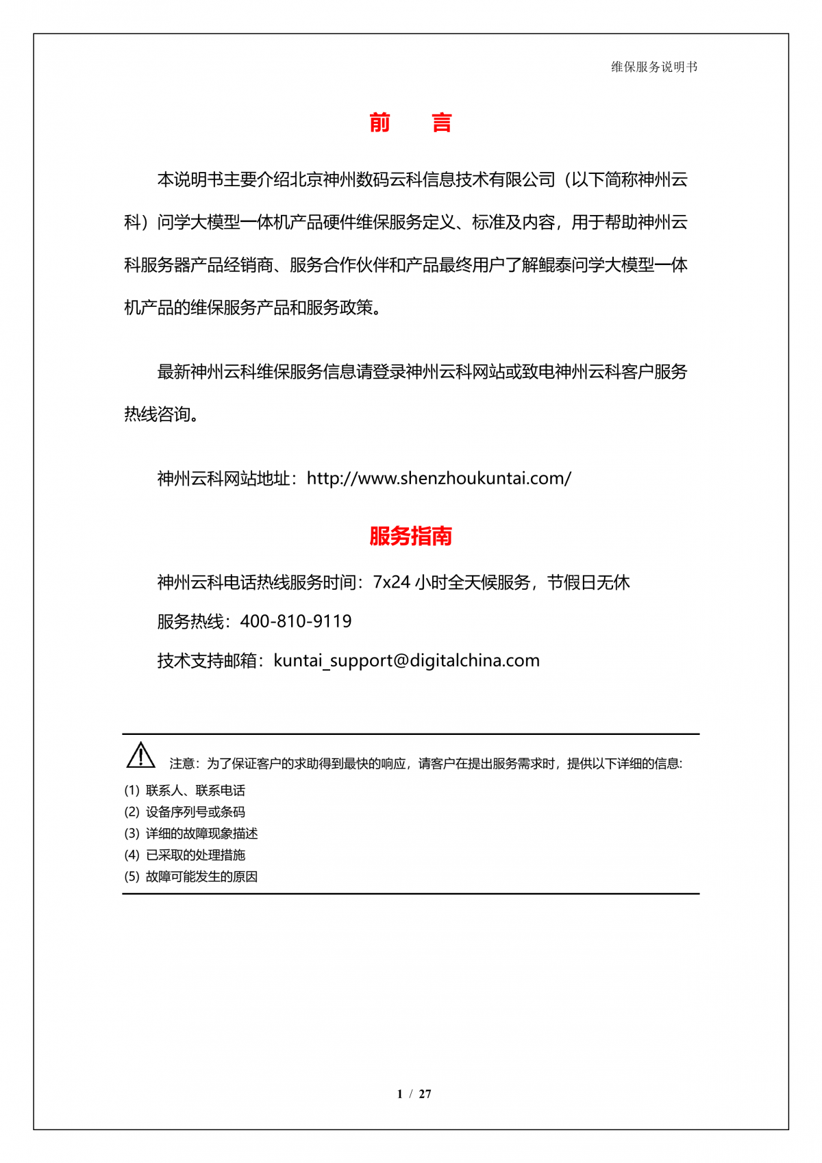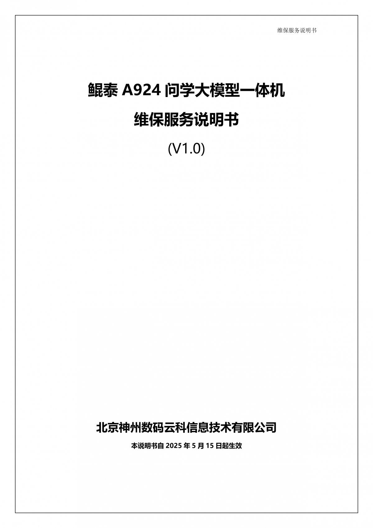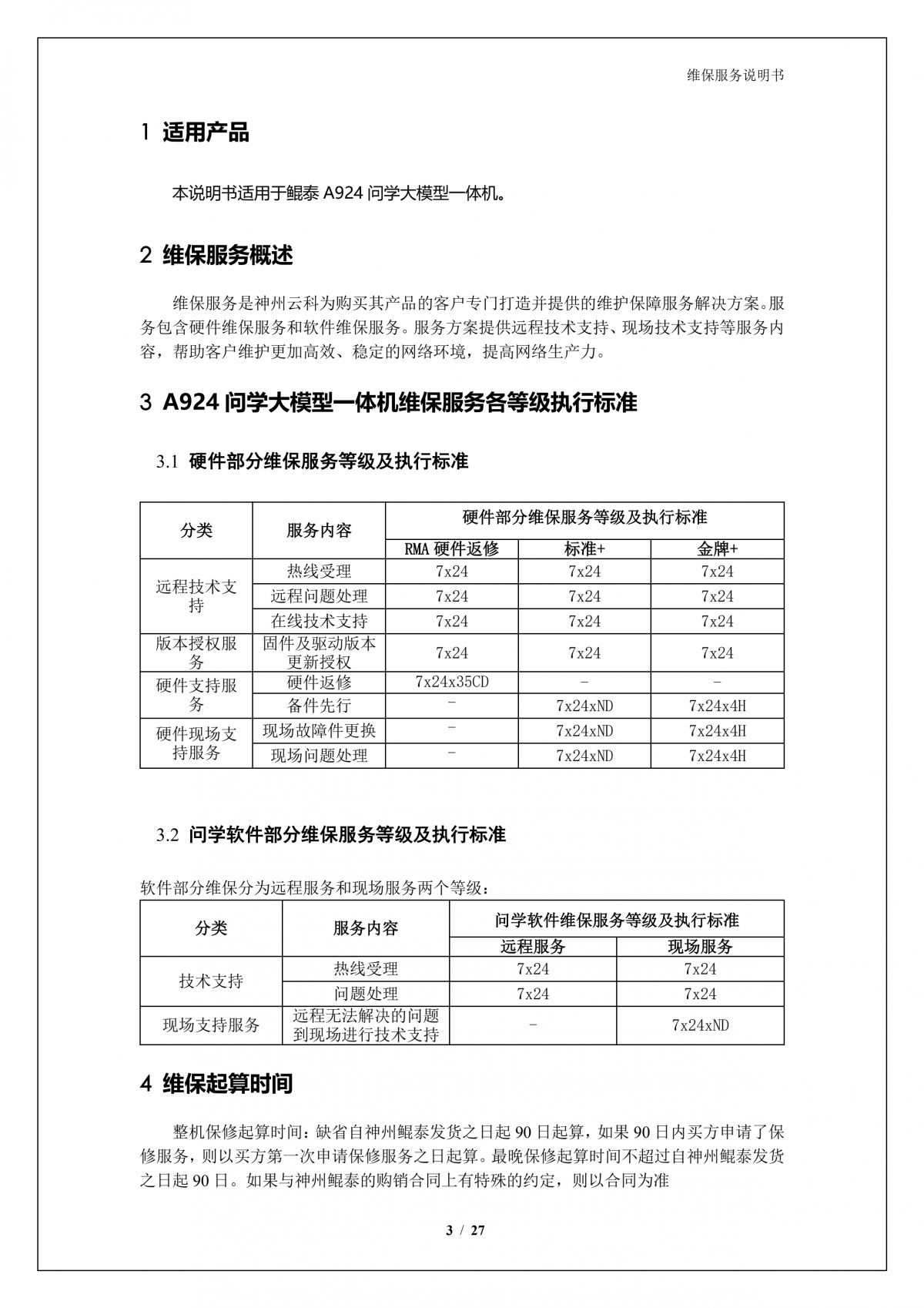 神州A924 问学大模型一体机维保服务说明书_V1.0